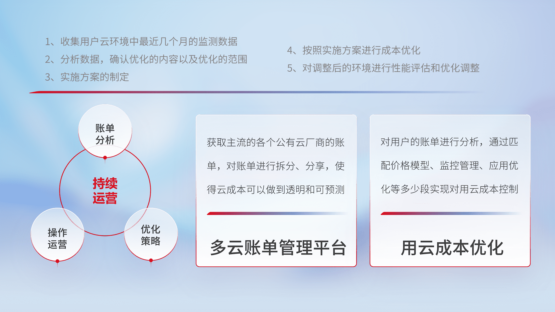监控业务系统资源开销,,对资源的消耗精确计量,,实现费用的透明化管理,,,不断提升资源使用率,,,,调整资源购买方式,,降低资源费用成本,,用云成本可预测、、用云费用可优化,,,云资源配额有据可依。。